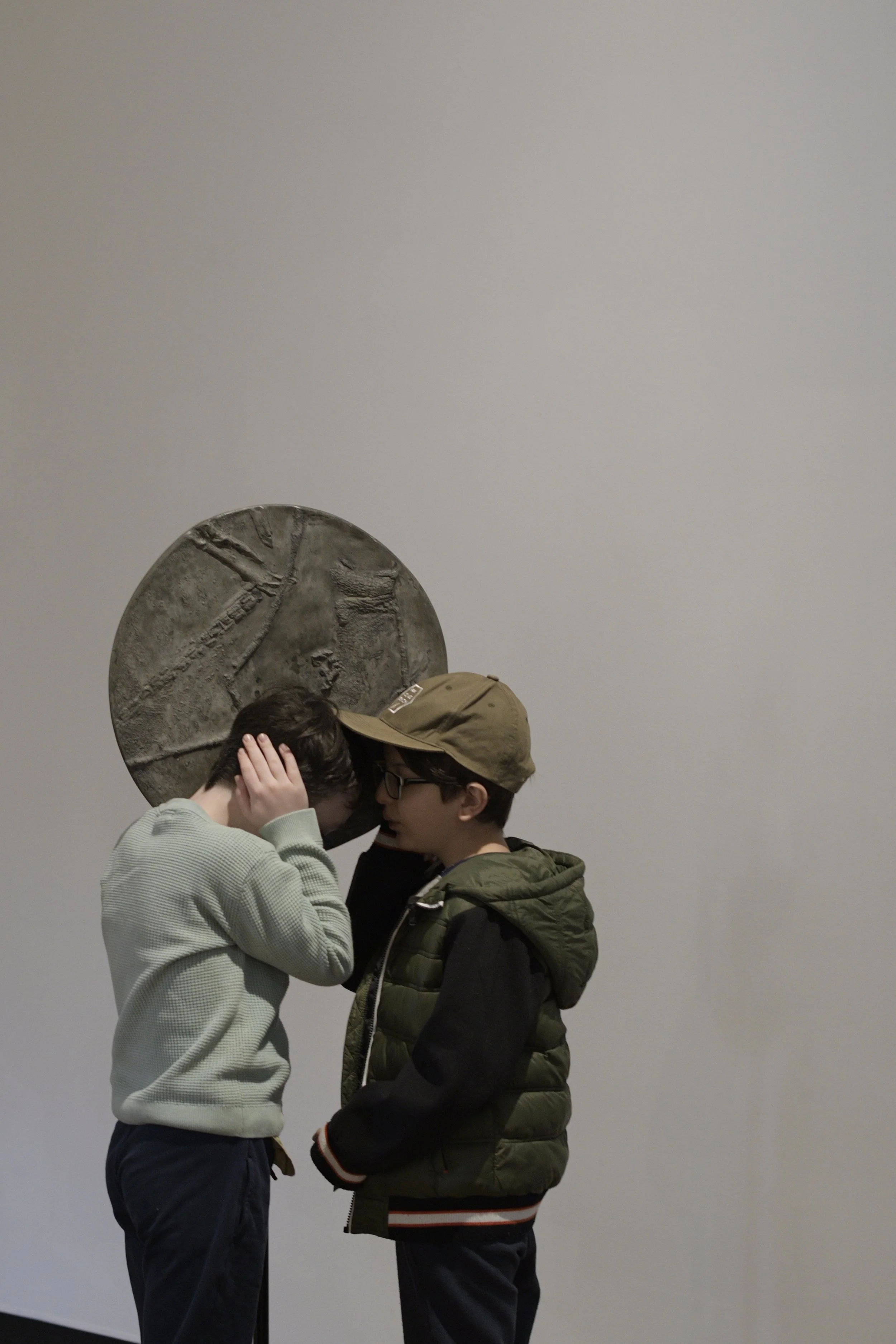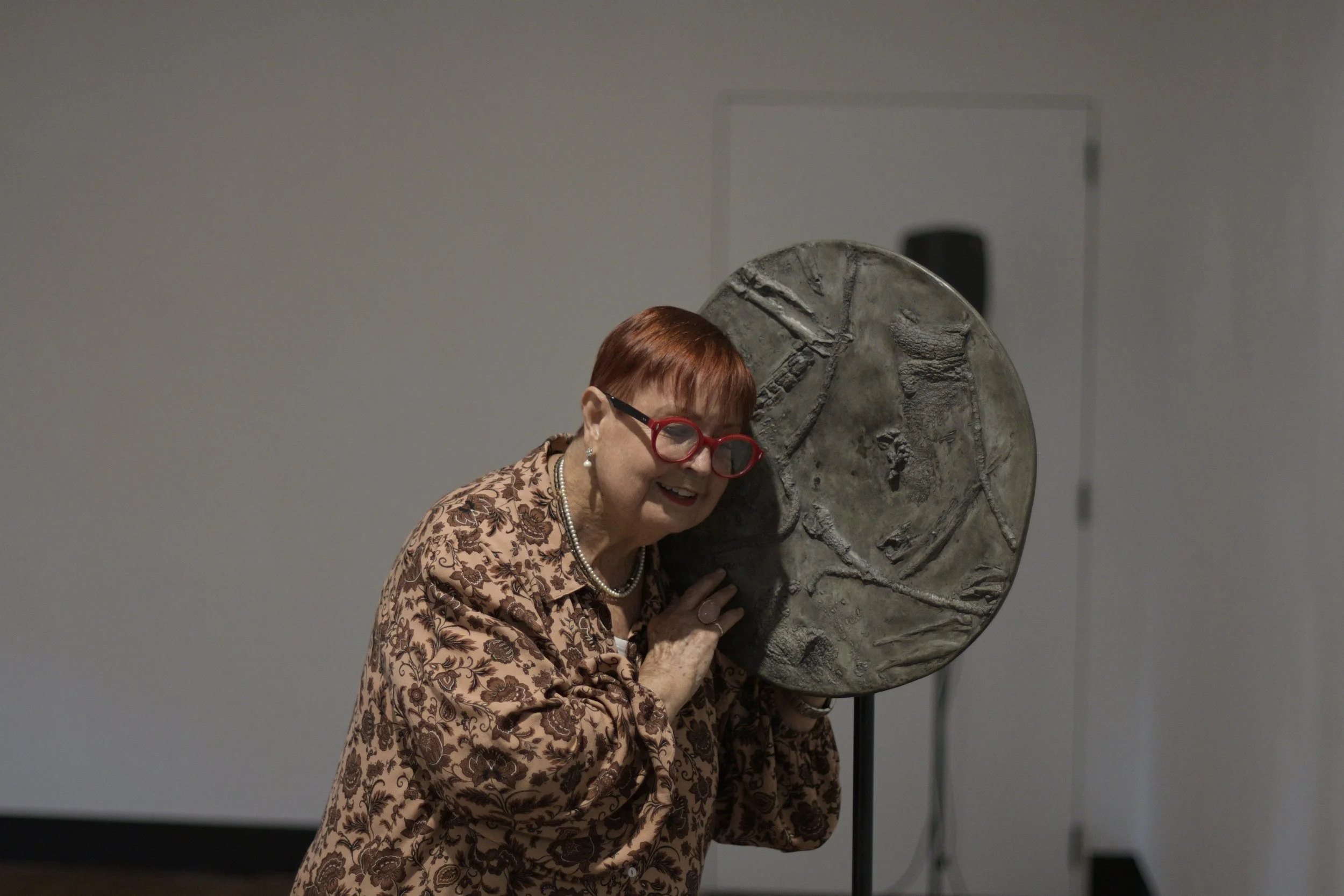 Three large circular dishes (approx. 50cm diameter) made from kiln-slumped glass, cast concrete and hammered steel are mounted on tall, fabricated steel stands. A fourth large cement dish lies face up on the ground. Each object is sonified as a speaker, revealing in the process the different resonant qualities of the material. The timbral differences become pronounced as listeners move close to each dish; concrete swallows sounds, favouring lower frequencies; glass projects sustained tones in mid-to-high frequencies; and steel sings with metallic mid-range frequencies.